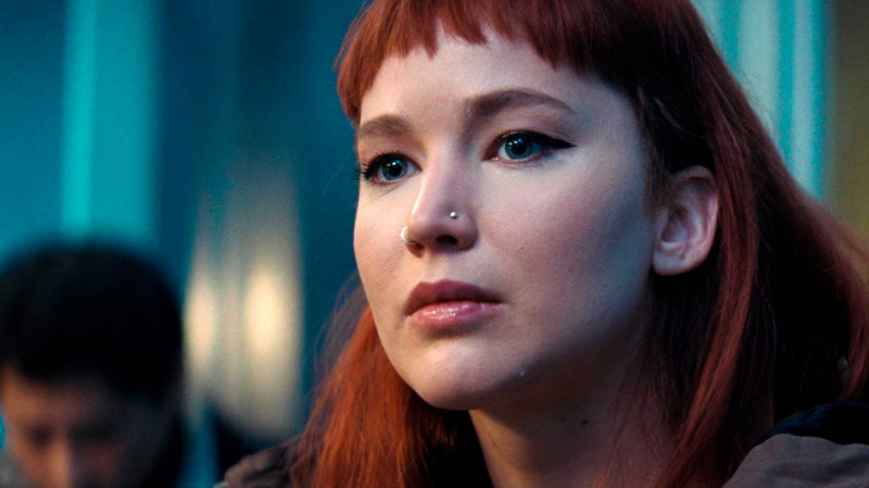 Дженнифер Лоуренс в роли Кейт понравилась. Я эту актрису практически не знаю, помню ее только в главной роли в очень средненьком фильме "Пассажиры", но здесь все сыграно достойно, и ее героиня выглядела достоверно что с ее истериками (конечно же, объяснимыми), что с ее последующими приключениями в компании с кажущимися опасными, но впоследствии вполне свойскими скейтбордистами, среди которых затесался наследник дома Атрейдесов, который тут смотрелся вполне аутентично, и я, если честно, совершенно не понимаю раздражения многих критиков по поводу появления Тимоти Шаламе в данной роли - персонаж у него получился достаточно забавный.