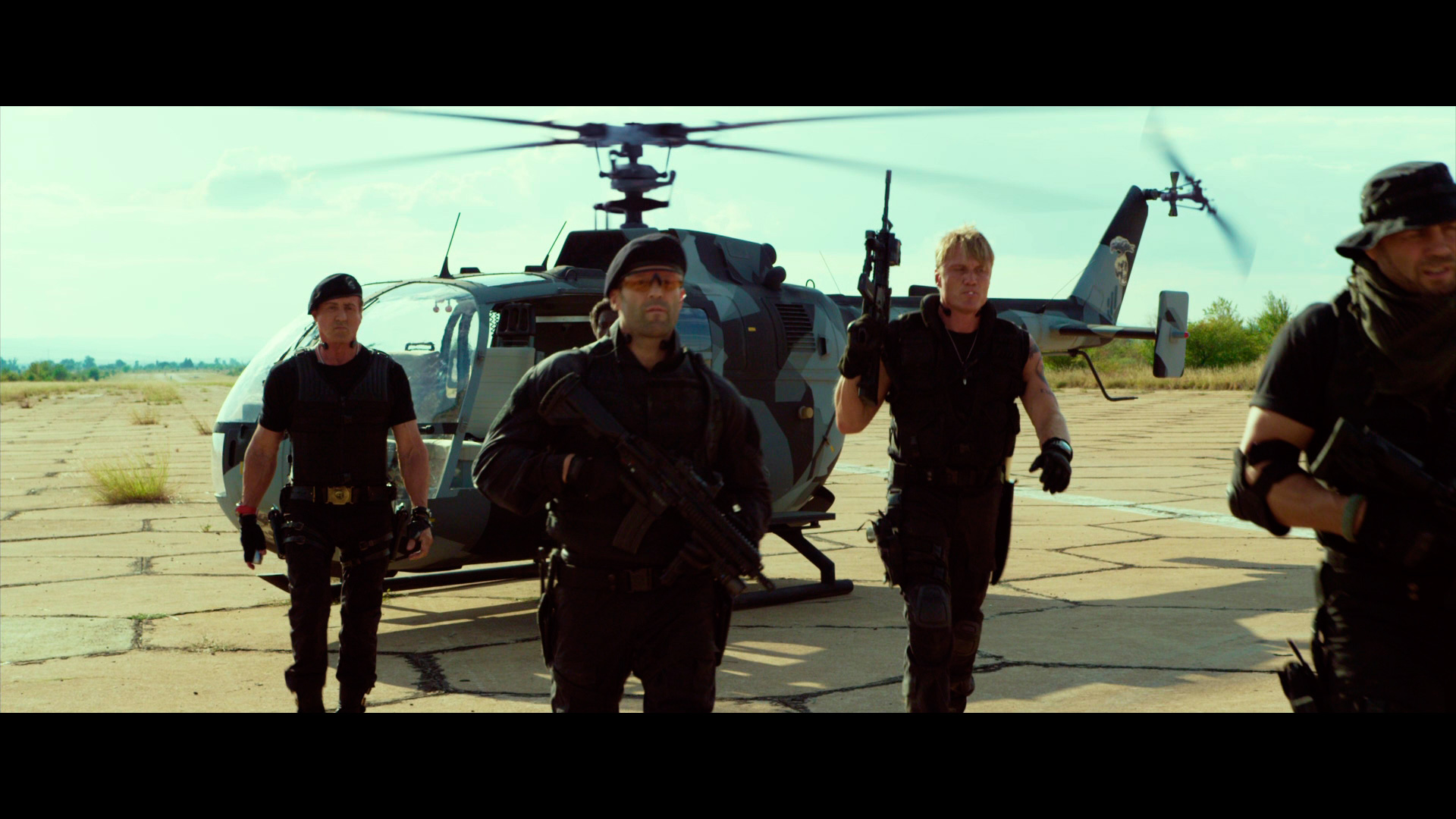 Мэл Гибсон сам не верит в жуткое злодейство своего персонажа, Сталлоне в роли Барни потихоньку начинает вызывать жгучее сочувствие, Стейтэму в этом балагане явно становится очень скучно, Лундгрену в этом балагане явно хочется выпить, а Шварценеггер тут выглядит, увы, как явный кандидат в дом престарелых.