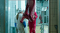 Какие-то критики пишут, что скотобойня и связанные с этим сцены (их довольно мало, но они есть) - это такой специальный эпатаж. Мне так не показалось. Наоборот, трудно было выбрать наименее подходящий антураж для демонстрации зарождающегося чувства между двумя настолько одинокими людьми, как скотобойня. И это специально было выбрано, и, на мой взгляд, оно сработало намного лучше (там можно долго обсуждать различные метафоры, приходящие на ум, но я это не буду делать), чем если бы главные герои встретились в оранжерее, где выращивают розы.