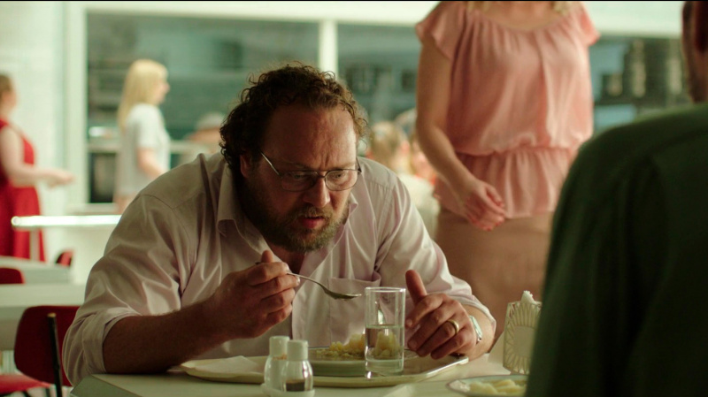 Что интересно, Геза Морчани, сыгравший Эндре, он вообще не актер! Морчани на самом деле является директором крупнейшего литературного издательства в Венгрии, он сам - драматург и переводчик (кстати, немало переводил русскую классику). Как Ильдико Эньеди его вообще привлекла к исполнению одной из главных ролей - доподлинно неизвестно, однако персонаж у Гезы получилась интересный: директор непростого производства, который должен рулить процессом и общаться с персоналом, неработающая левая рука и связанные с этим явные психологические проблемы (а у кого бы они не возникли?), явное желание держать серьезную дистанцию с другими людьми, одновременно он старается проявлять какое-то дружелюбие и общается с некоторыми подчиненными, при этом - звенящее одиночество и явное желание поставить крест на любых возможных взаимоотношениях, потому что это принесет только новые переживания и новую боль. Неброско, сдержанно, совсем на полутонах, но реально хорошо, и понятно, почему Ильдико его пригласила на данную роль: она это в нем все разглядела.