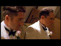 Остальные роли в мужской компании были значительно менее заметны, хотя Джон Фавро, сыгравший жениха, выглядел достаточно неплохо, а к концу - даже слегка развернулся. Но из их парочки наиболее яркой была все-таки Кэмерон Диас, сыгравшая классическую, хотя и слегка гротескно-пародийную стерву невесту, которая то непрерывно пилит своего жениха, то требует знаков любви, то выставляет всякие условия, то снова вымаливает "скажи, что ты меня любишь", то наезжает на его дружков. Впрочем, концовка все искупает. Даже и не знаю, что лучше - такая концовка, какая есть, или та, которую убрали после тест-показов...