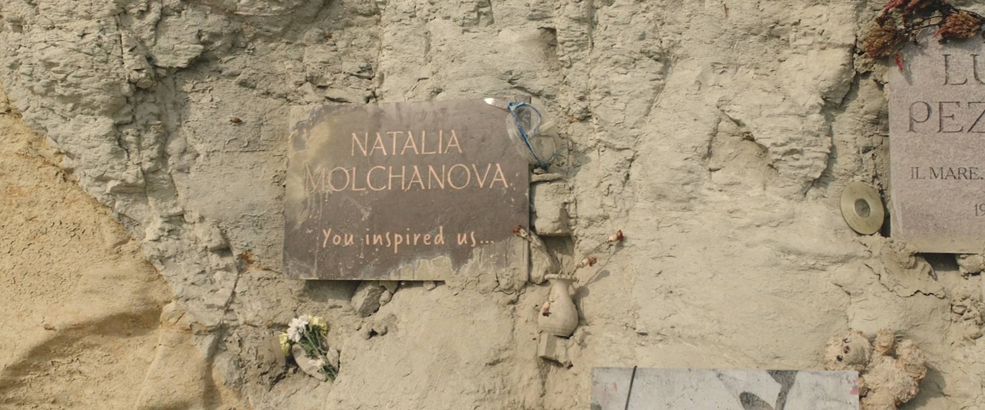 И тем не менее отсылку к Молчановой они-таки вставили. И вышло - не знаю, кому как, а мне слегка неловко. Это же табличка у того самого кладбища дайверов. Вроде как взяли и похоронили героиню - с заделом на будущее, так сказать. А фильм - да, беспомощный.