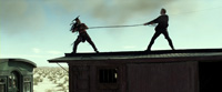 Ни стиля, ни интересно-позёрской игры актёров, ни панковской игры актёров, ни музыки, ни харизмы действующих лиц, ни спецэффектов (отстаньте все с сэкономленными от натуры компьютерными бизонами! - одного торможения паровоза хватило бы на отрицательное мнение, но ПЫРЫЖОК белого мерина с крыши времён 80-х?!!!), ни комедийности.