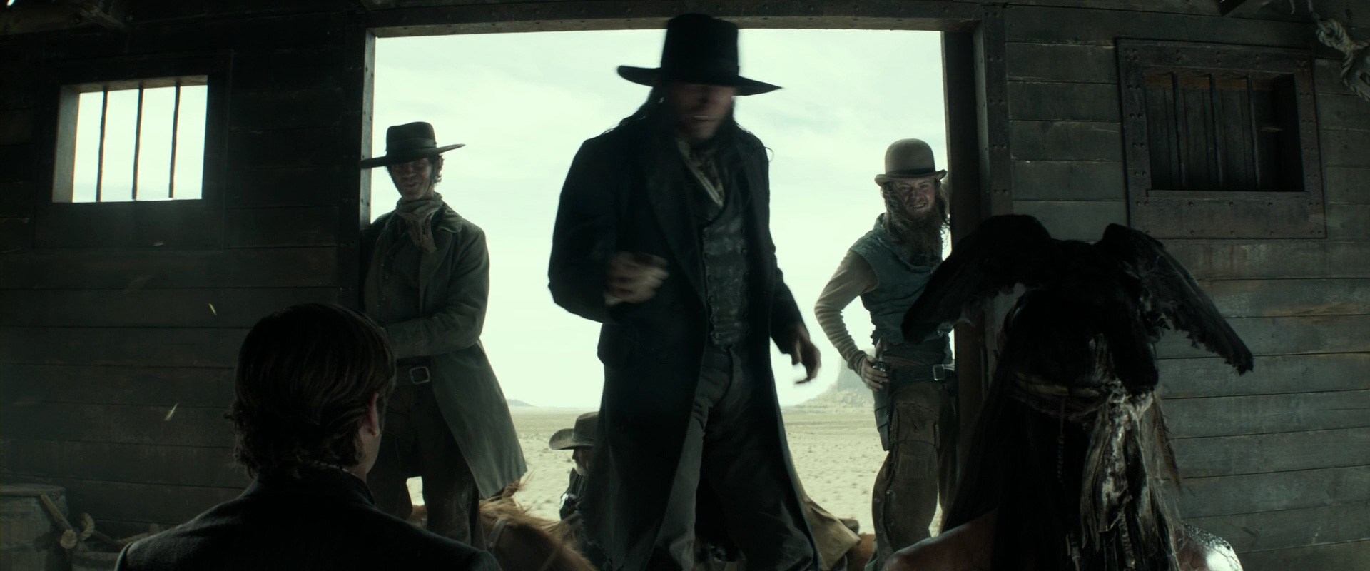 Согласен. Сюжетная канва содрана с "Однажды на диком Западе" Сержио Леоне, ужимки Джонни Деппа, столь свежо и оригинально смотревшиеся у Джека Воробья, здесь выглядят явно вторично. Хаммеровский персонаж откровенно плоский. Только Хелена Бонем Картер и Уильям Фихтнер отыграли на пять с плюсом, молодцы! Ну и спецэффекты местами неплохи. В общем, одноразовый кинчик под пивцо с чипсами. С "Пиратами" даже и рядом не стоял.