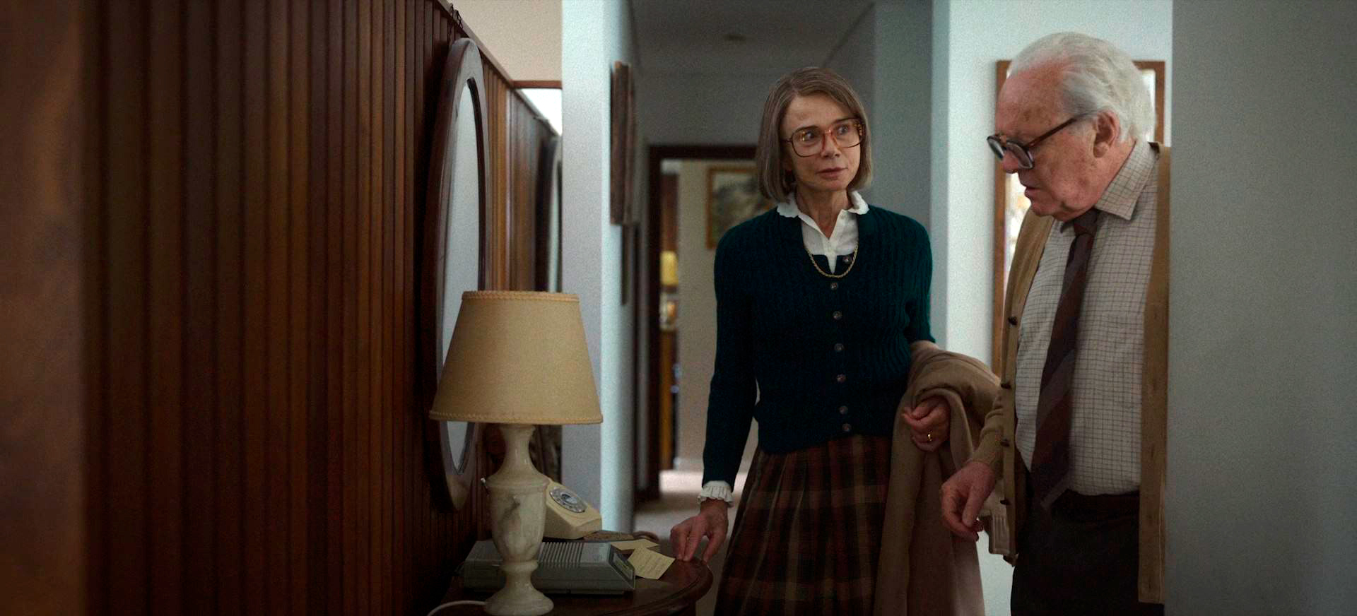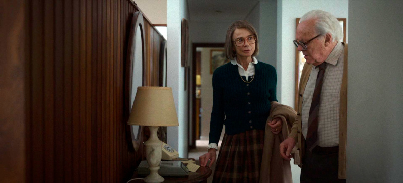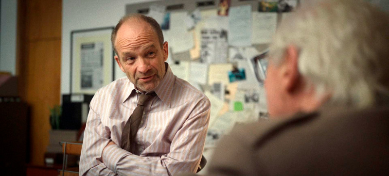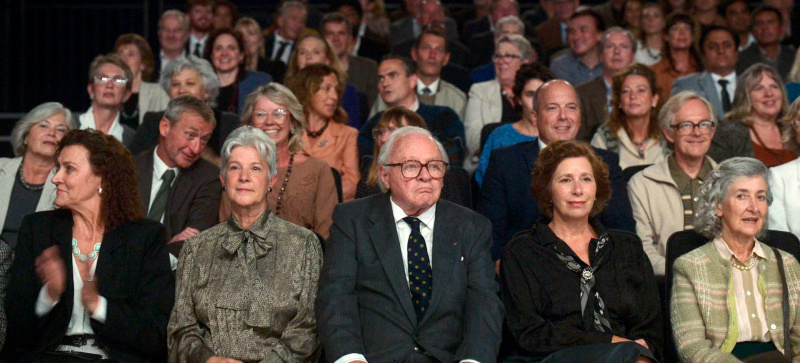 Хопкинс эту роль играет отлично - впрочем, как и всегда: Уинтон - обычный пенсионер, занимающийся благотворительностью, об истории с "Чешским киндертранспортом" он никому не рассказывал, потому что это - дела давно минувших дней, к тому же у него осталась глубокая психологическая травма из-за того, что последний уже снаряженный поезд немцы из Праги уже не выпустили, и эти дети, скорее всего, все погибли.