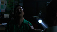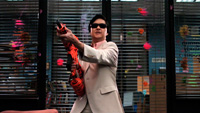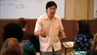 Второй совершенно буффонадный персонаж - шизанутый кореец Бен Ченг (Кен Джонг). В начале фильма он был преподавателем испанского (уже смешно) и меня этот персонаж очень раздражал своим сильным переигрыванием, потому что он этим резко выделялся на фоне остальных героев. Однако с Ченгом-преподавателем быстро все выяснилось, и он в картине сменил несколько профессий, и вот тут он чем дальше, тем был забавнее и забавнее.
