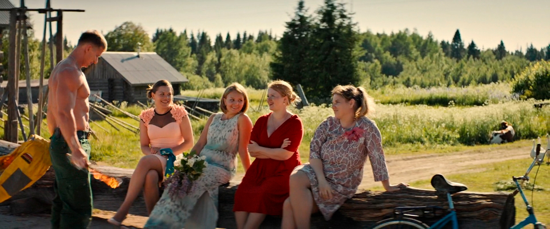 Также здесь играет очень хорошая актриса Ирина Горбачева (она, собственно, снималась во всех трех фильмах режиссера Алексея Нужного), но у нее роль очень маленькая: Ирина изображает роженицу на последнем сроке, которая почему-то дожидается родов в деревне, когда вокруг полыхают пожары. Но мы договорились, что не будем задавать вопросы к сюжету - здесь это совершенно ни к чему.