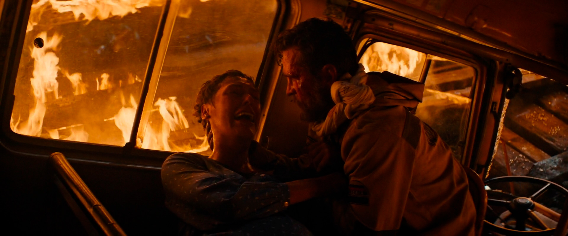 За что можно похвалить? За нагнетание напряжения и постановку реального ужаса под названием "верховой лесной пожар". Это снято очень и очень эффектно. Более того, насколько я понял, здесь очень по минимуму использовалась компьютерная графика, а сцены горящего леса снимались в специальном павильоне, где этот "лес" был выстроен из настоящих спиленных деревьев. И актеры снимались рядом с настоящим горящим деревом, так что съемки были реально очень тяжелыми. Но это как раз было не зря - в картине все сцены с пожаром выглядят достаточно достоверно, а не мультяшно.