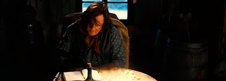 Было бы интересно почитать, как это кино смотрится с таким широким кадром, 2.76:1, да еще и с 65 мм пленки. Все-таки это уникальный кинопроект, его лучше смотреть в кино, и желательно в оригинальном формате. А я так понял, вы смотрели DVD-скринер, слитый в сеть, поскольку в Испании прокат стартует только в январе. Может быть плохое качество скринера как-то повлияло на ваше восприятие?