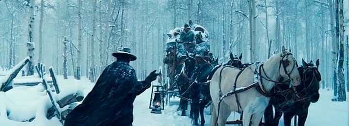 По дороге в карету к Руту подсаживается другой охотник за головами - майор Маркис Уоррен (Сэмюэль Джексон), который с собой везет несколько трупов бандитов: их Уоррен также должен представить в городе Ред-Рок и получить восемь тысяч долларов.