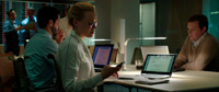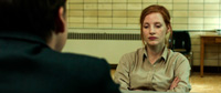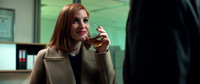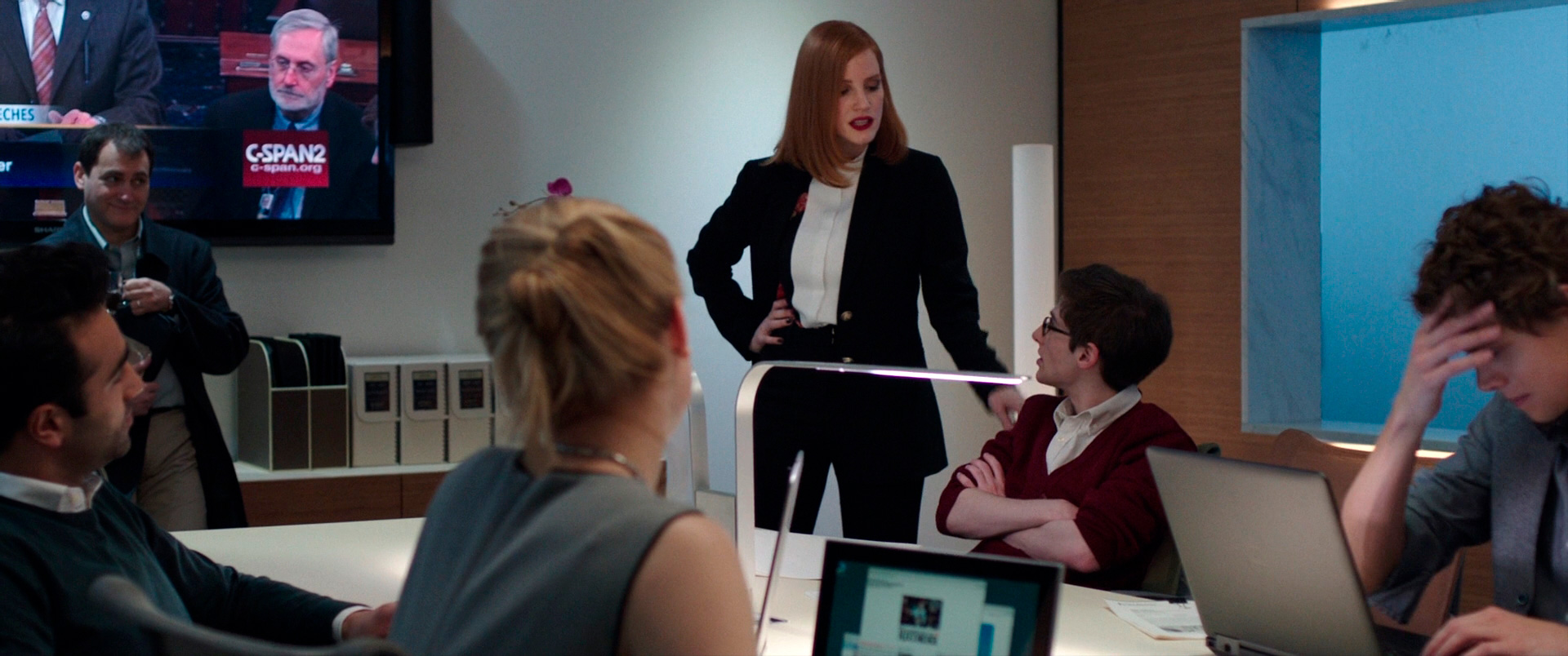 За мисс Слоун и ее работой во благо или во вред американскому обществу (хорошей лоббистке, по идее, должно быть абсолютно все равно) наблюдать очень интересно. Вот с этой точки зрения в сценарии есть удачные моменты: ты никогда не знаешь, с какой целью Слоун делает те или иные вещи. А она никогда не делает ничего просто так.