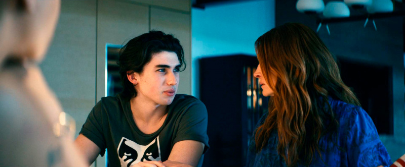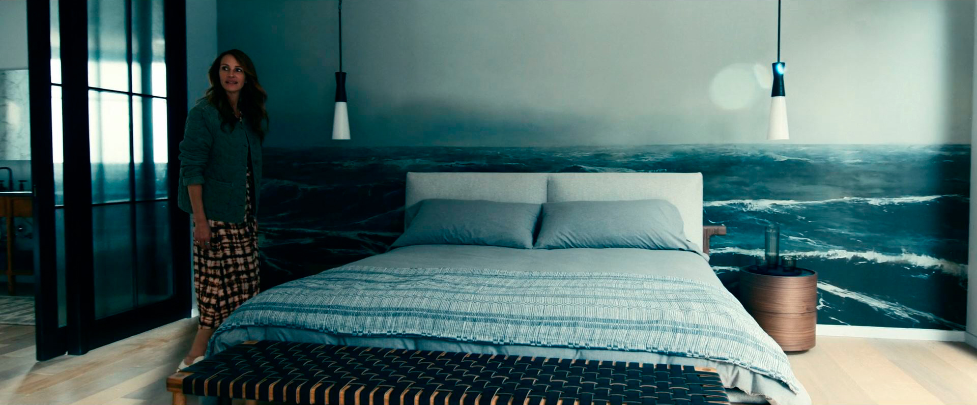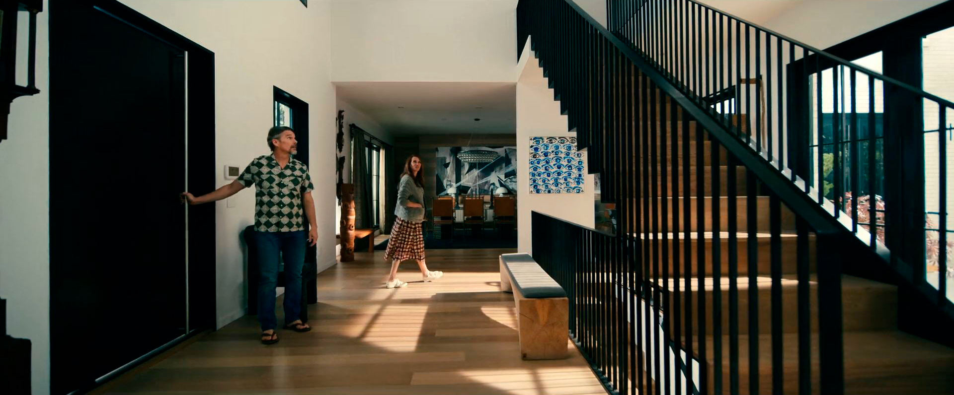 Кроме того, постановщик и оператор умеют находить очень интересные ракурсы (там были активно задействованы дроны), и я совершенно не согласен с теми критиками, которые говорят, что вся эта красотища как бы выбивалась из стиля фильма - наоборот, она его дополняла. Также обратите внимание на обстановку дома и картины - там с ними тоже сделано интересно, и это обращает на себя внимание.