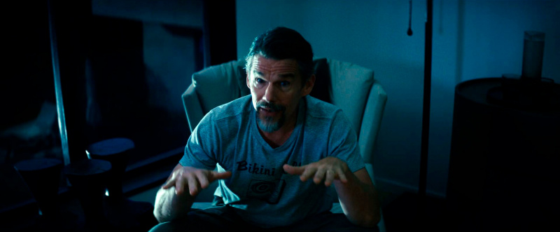 Кевин Бэйкон... ой, Итан Хоук вполне симпатично изобразил совершенно бесконфликтного Клэя, который как раз и вызывал интерес своей полной бесконфликтностью. А Кевин Бэйкон тут тоже есть: он играет маленькую роль эдакого долбанутого выживальщика, который уверен, что дебилы-политики доведут-таки этот мир до апокалипсиса, поэтому делает все для того, чтобы выжить в новом мире - ну и теперь скажите, кто, вообще говоря, из всех нас долбанутый, потому что даже врожденный оптимист кот Бублик почти уверен, что примерно так оно все и будет, потому что все на это и указывает.