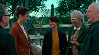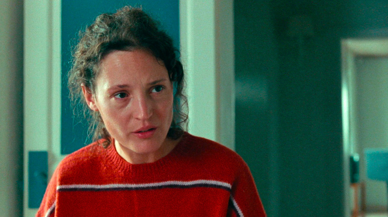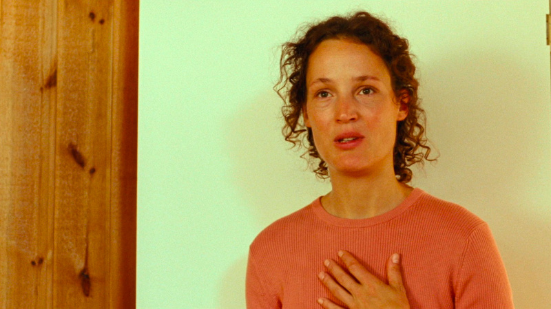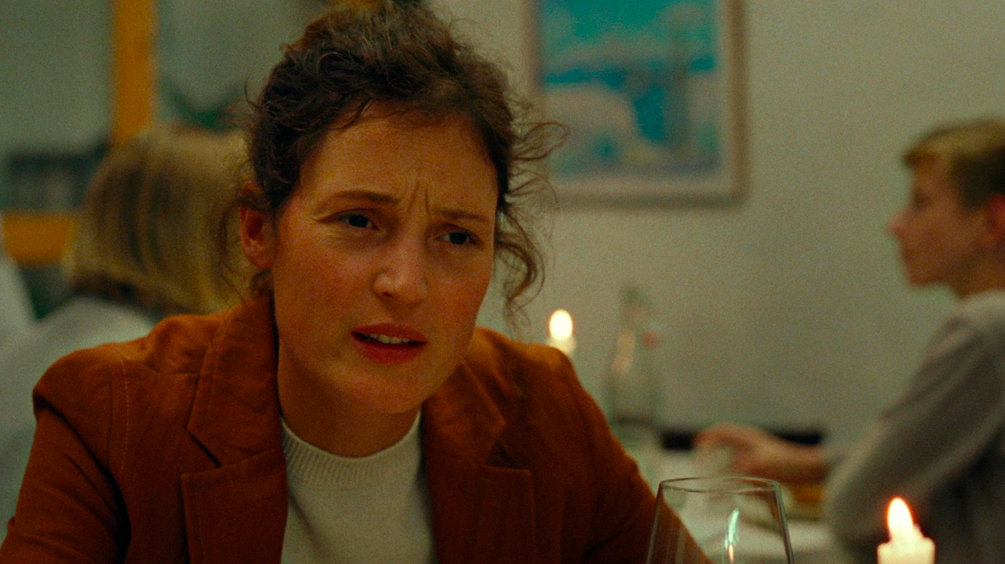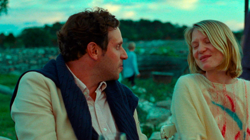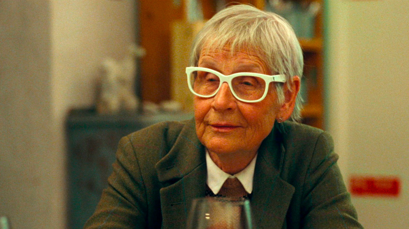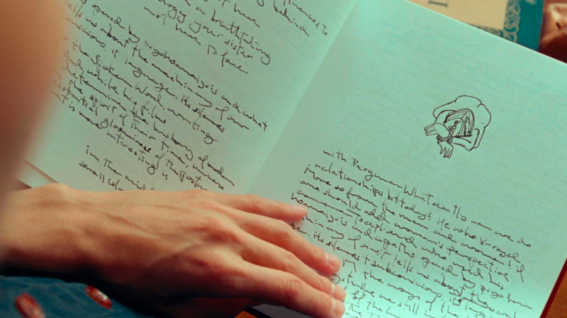 Здесь она - просто очень хороша. Несколько нескладная, угловатая, вспыхивающая румянцем на щеках, когда она нервничает, при этом обаятельная, живая, поразительно естественная, и одновременно хорошо видно, что она тоже - творческая личность, которая на что-то способна. Ну да, ее "Белое платье" (тот самый сценарий, о котором она рассказывает Тони) - это, конечно, никакой не Бергман, а скорее просто мелодрама для стримингового сервиса, но, должен признаться, мелодрама очень даже неплохая, уж на что я не большой любитель этого жанра.