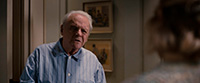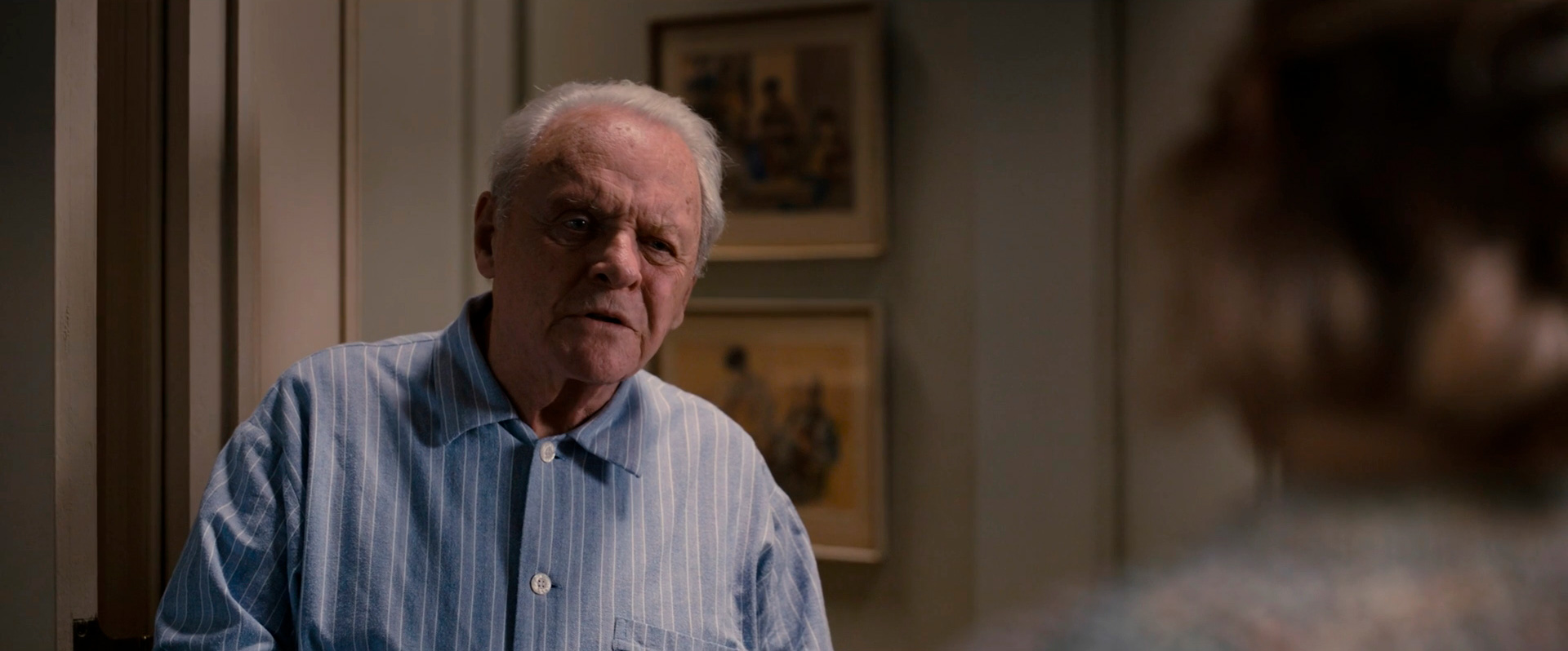 Роль Энтони Хопкинса в данном фильме - это что-то невероятное! В поведении его персонажа есть огромное количество самых разнообразных, причем довольно тонких психологических оттенков. Как он отрицает свое состояние (Энтони часто повторяет фразу "уж не думаете ли вы, что я сошел с ума"), как впадает в ярость, при этом он может быть невероятно обаятельным с человеком, который ему понравился (там совершенно потрясающий эпизод, как он знакомится с новой сиделкой Лорой, которая напомнила ему вторую дочь Люси: та давно погибла, но Энтони об этом уже не помнит и удивляется тому, что Люси давно не заходила его проведать).