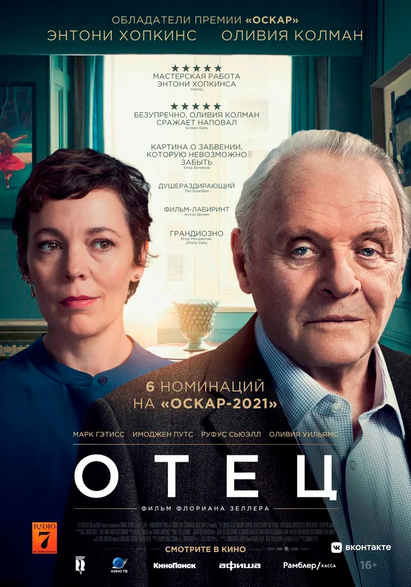 Отличный фильм: замечательный сценарий, профессиональная постановка (а ведь у Зеллера это кинодебют), замечательные актерские работы и действительно выдающаяся роль Энтони Хопкинса. Добавьте к этому искусно подобранную музыку (что-то из своих любимых композиций предложил сам Хопкинс, насколько я читал) и мастерскую работу оператора Бена Смитхарда - так что тут не приходится удивляться тому, что у этой картины два выигранных "Оскара" ("лучшая мужская роль" и "лучший адаптированный сценарий") из шести номинаций, аналогичные две победы из шести номинаций на BAFTA, ну и испанская премия "Гойя" 2021 года как "Лучший европейский фильм". А вот на "Золотой глобус" у фильма было четыре номинации и ни одной победы.