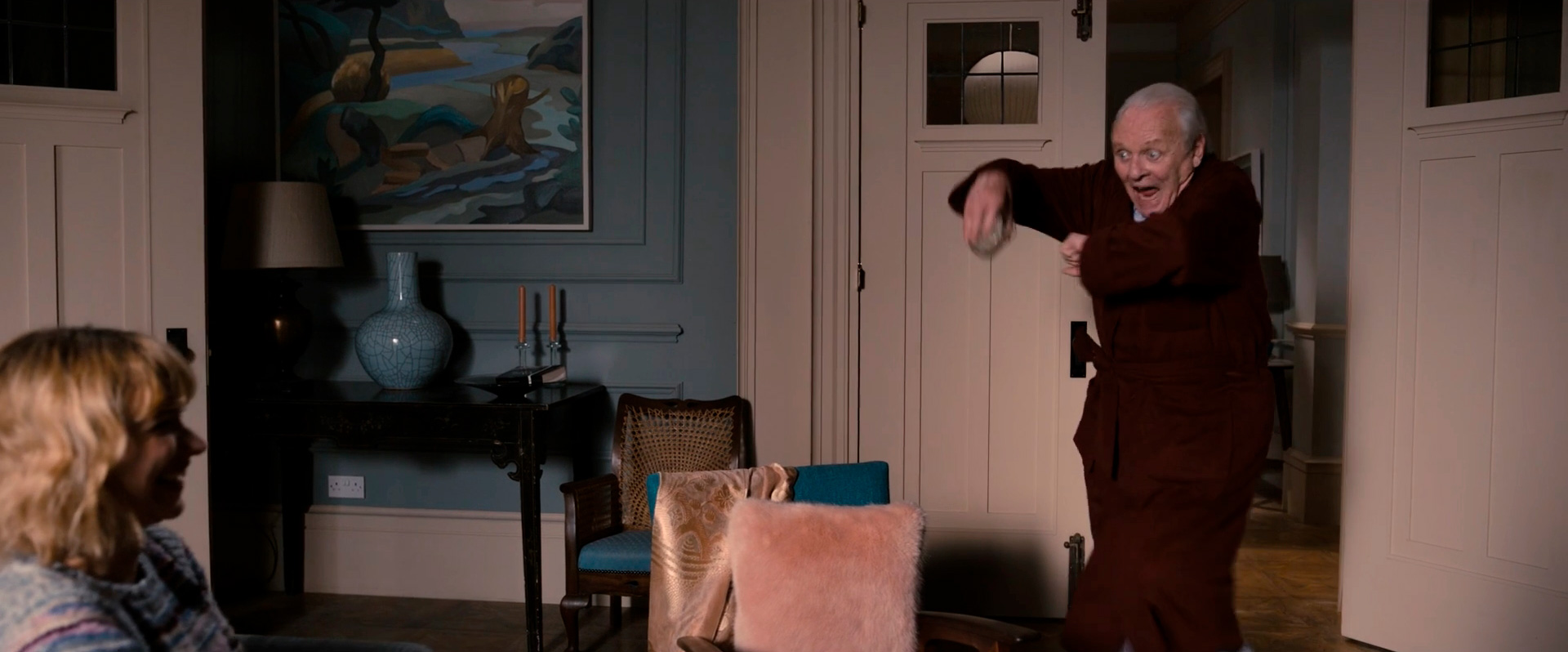 И зрители во время просмотра фильма также оказываются как бы в положении Энтони: они быстро понимают, что не очень-то можно доверять тому, что видит этот человек, потому что одни люди, которых он видит, реальны, другие могут просто накладываться из каких-то сохранившихся воспоминаний - в общем, разобраться с этим не так уж и просто, но с помощью такого формата создатели картины и демонстрируют, каково самому Энтони сталкиваться с подобным.