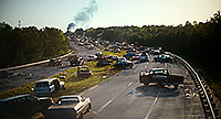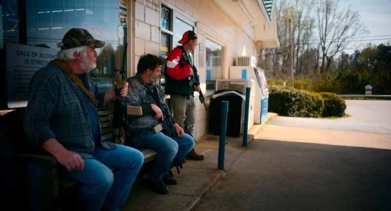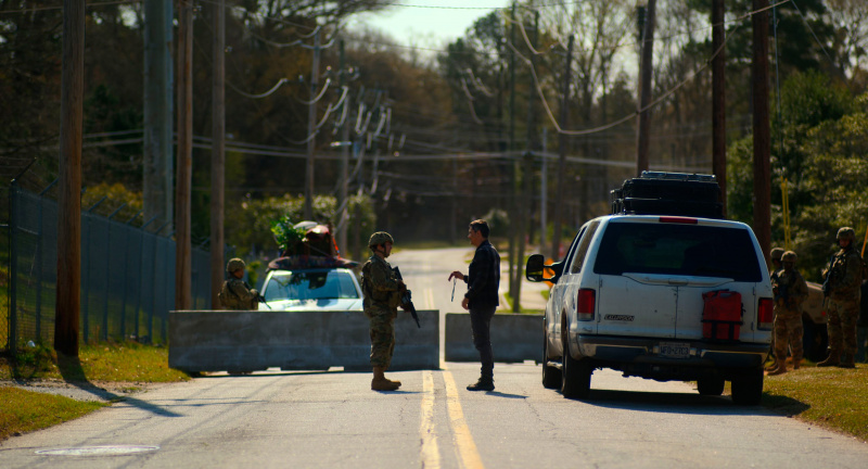 3. Ок. Но главное - где блок-пост на въезде? Они же, как выясняется, в курсе, что кругом жестокая гражданская война, и заезжай кто хош в любом составе? Что толку от двух мужиков с винтовками на крыше? Вообще - на весь путь в 800 кажись километров герои проезжают один блокпост военных, и тот - просто блоки на дороге. Да любая война немедленно обрастает блок-постами через каждый километр.. Здесь даже эти крендели на заправке сидят чилят без малейшего внимания к поляне, заедь кто чужой - там и останутся сидеть, в обнимку со своими "АРками".