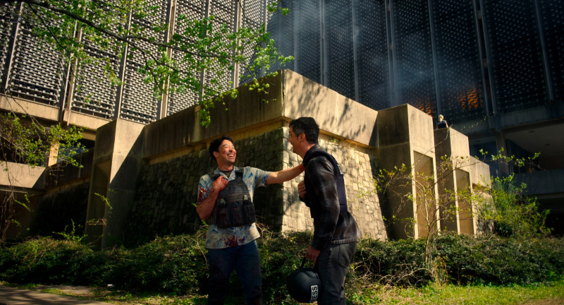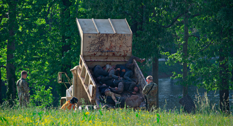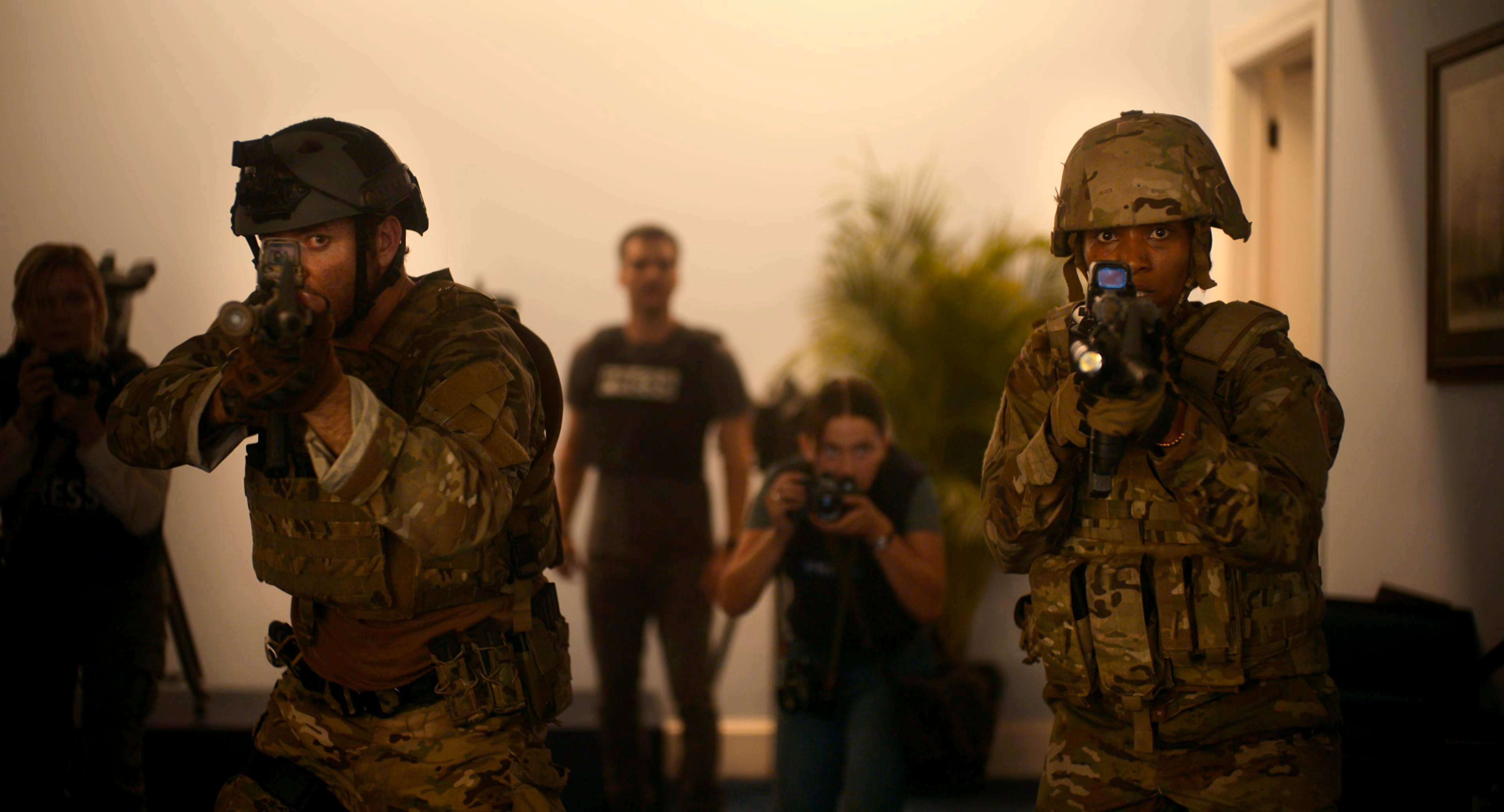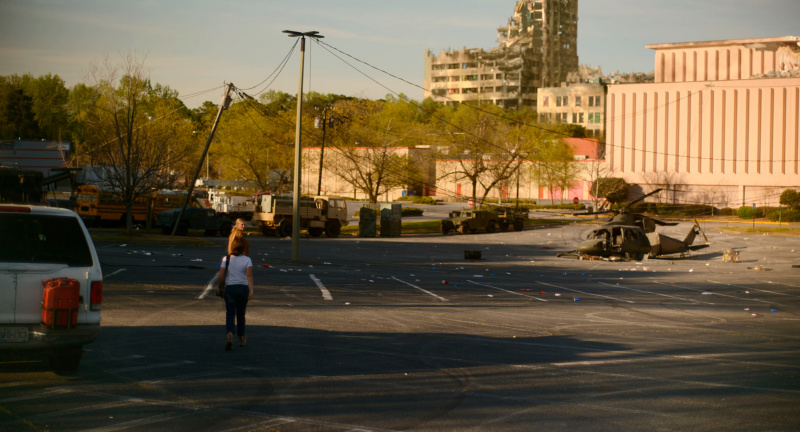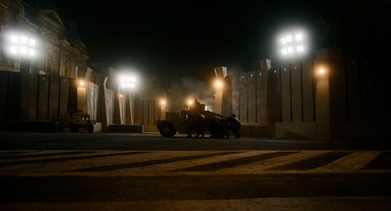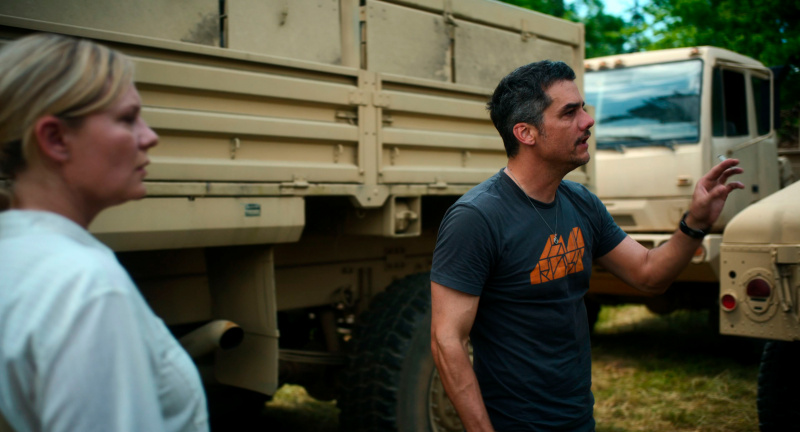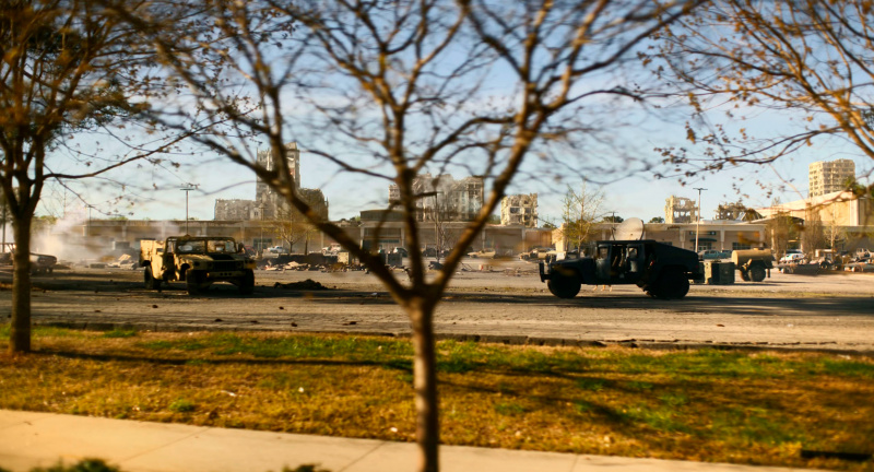 Снято это очень зрелищно - Гарленд и его постоянный оператор Роб Харди это умеют. А тут еще и добавился солидный бюджет, который они использовали на создание прямо-таки монументальных эпизодов с масштабными военными действиями самой разнообразной техники и людей. Причем я читал, что там было привлечено немало военных, имеющих реальный опыт, полученный ими в различных горячих точках, так что когда Ли с Джесси и Джоэлом следуют за военными, выполняющими определенную задачу, действия военных выглядят вполне достоверно и реалистично.