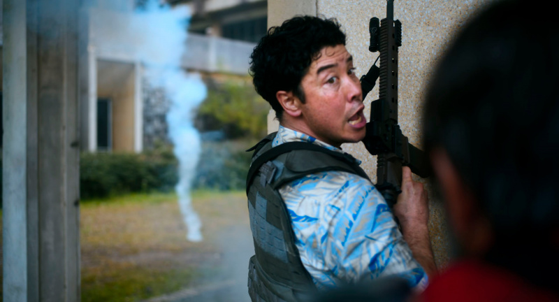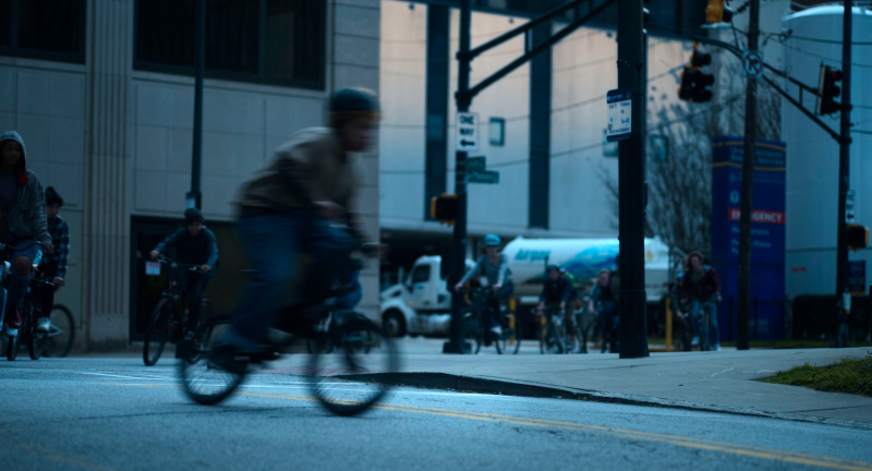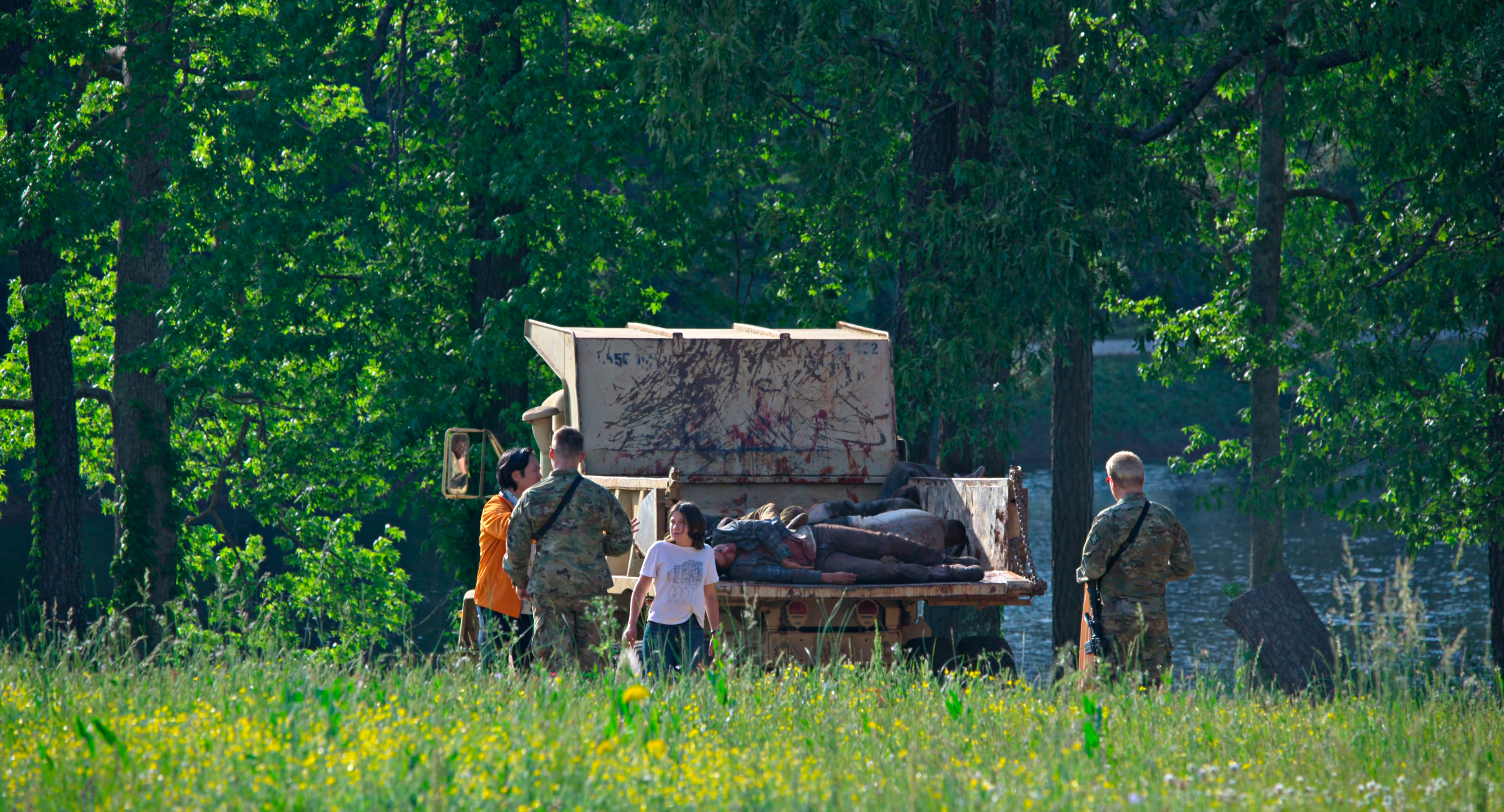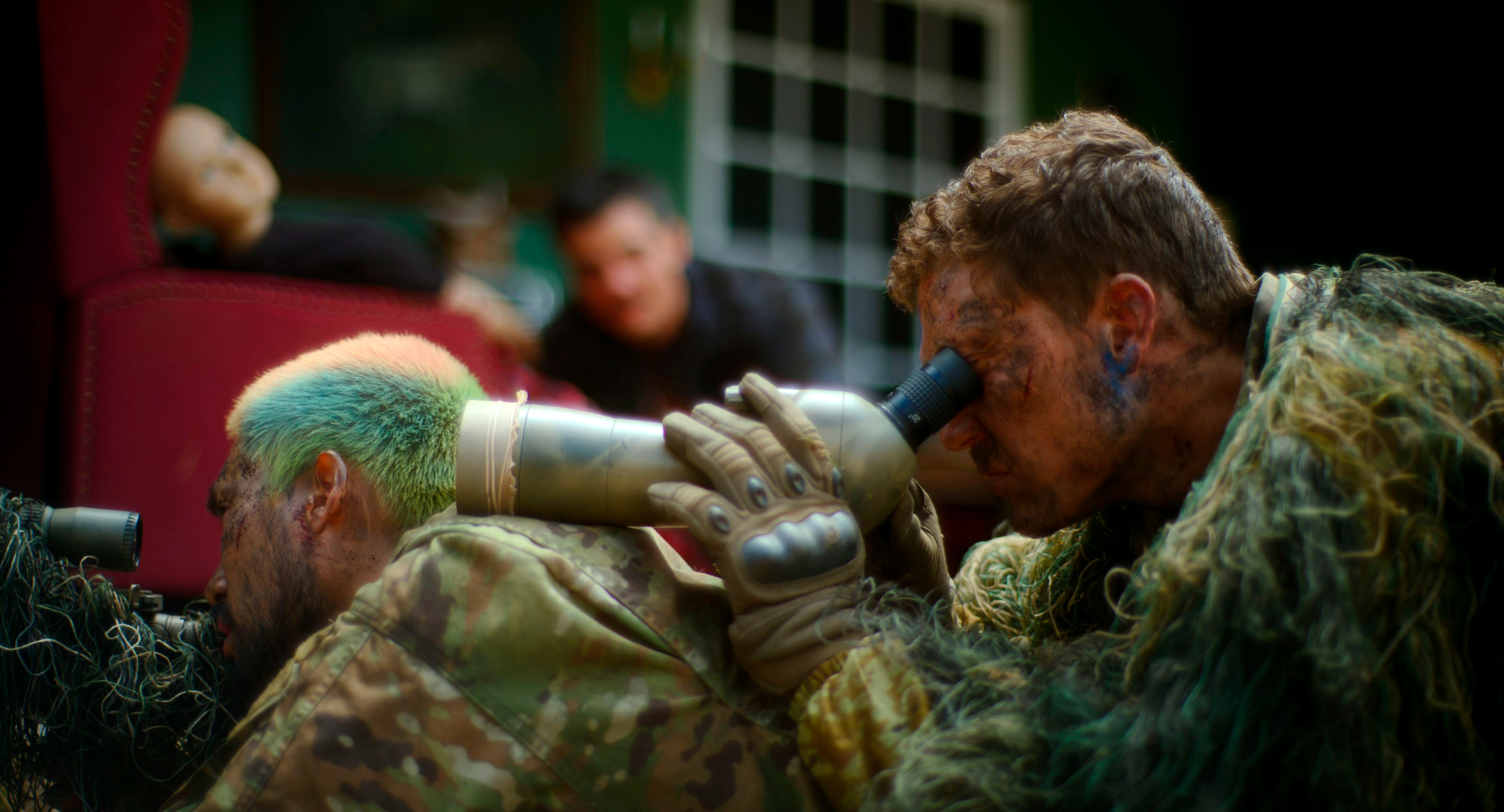 Снято это очень зрелищно - Гарленд и его постоянный оператор Роб Харди это умеют. А тут еще и добавился солидный бюджет, который они использовали на создание прямо-таки монументальных эпизодов с масштабными военными действиями самой разнообразной техники и людей. Причем я читал, что там было привлечено немало военных, имеющих реальный опыт, полученный ими в различных горячих точках, так что когда Ли с Джесси и Джоэлом следуют за военными, выполняющими определенную задачу, действия военных выглядят вполне достоверно и реалистично.
