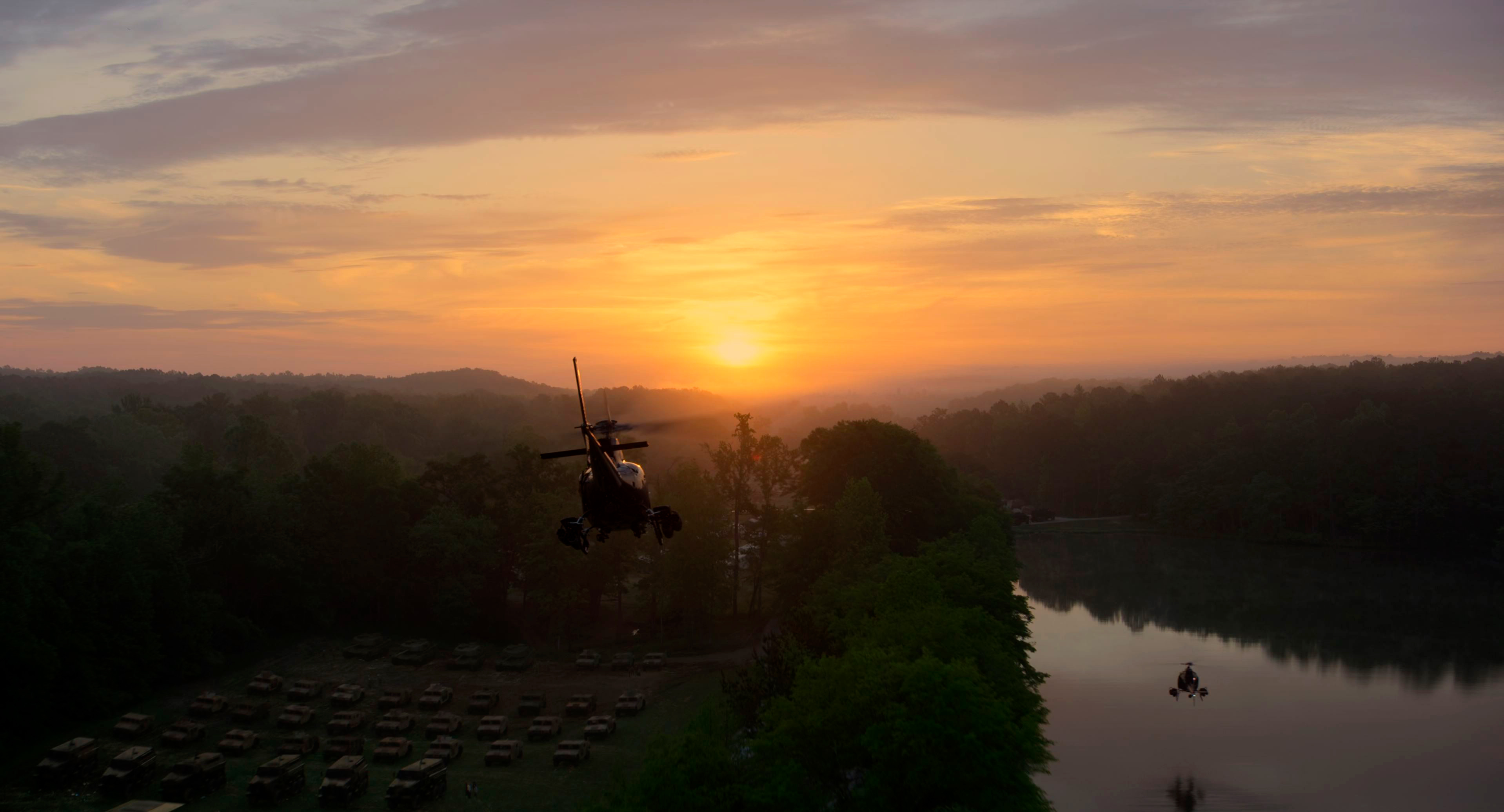 Именно на базе в Шарлотсвилле их коллеги сообщают им новость о капитуляции и нам показывают кадры снимающихся с базы войск летящих на Вашингтон.