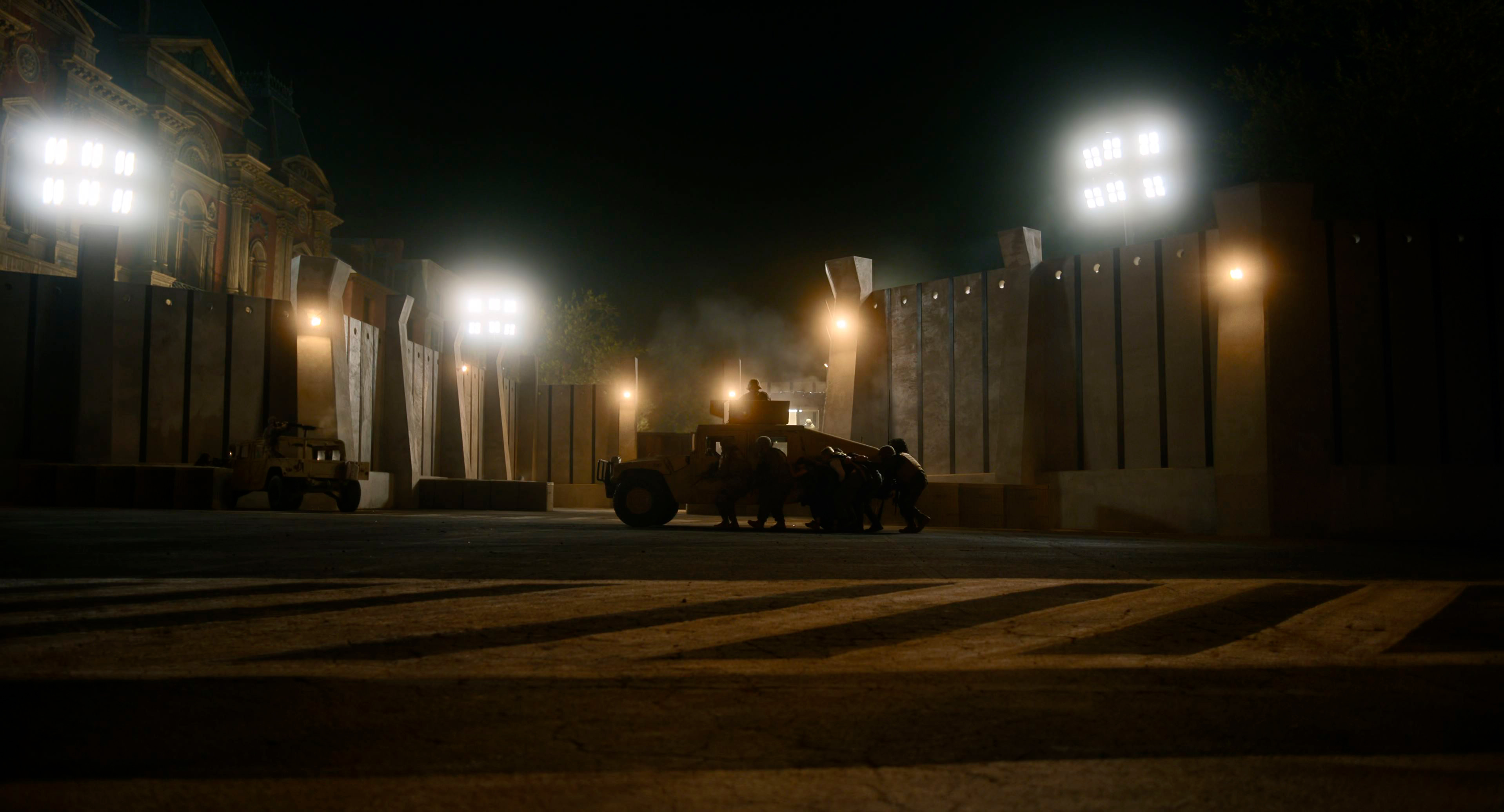 - противодействующие стороны стреляют не в друг друга, а в небо и трассирующими пелями, чтобы сделать красивую картинку в первом ночном эпизоде;