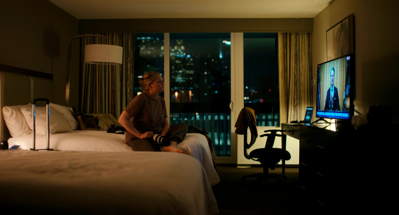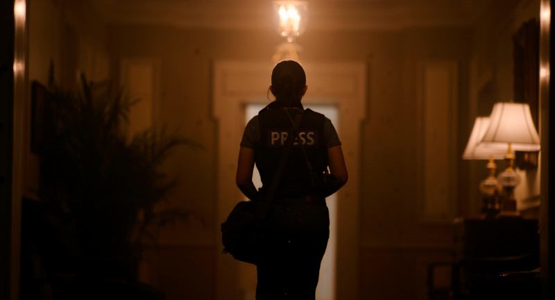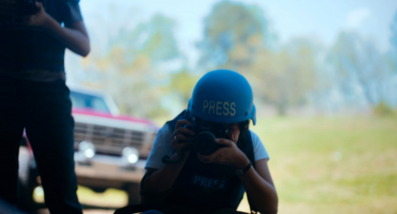 Для Ли, главной героини картины, работа военного фотографа означает быть в гуще событий, и, по возможности, максимально подробно запечатлеть это, чтобы люди потом получили достоверную информацию о том, что и как в этот момент происходило. И - да, она - адреналиновая наркоманка: нахождение в подобных экзистенциальных условиях - основа ее существования. Она прямо говорит в картине, что такая журналистика - это не про зарабатывание денег, это про адреналин. Равно как и ее напарник Джоэл - он тоже прямо говорит, что от звуков перестрелок у него "огромный стояк": он тоже адреналиновый наркоман, как и Ли.