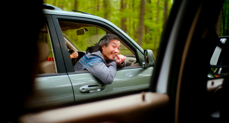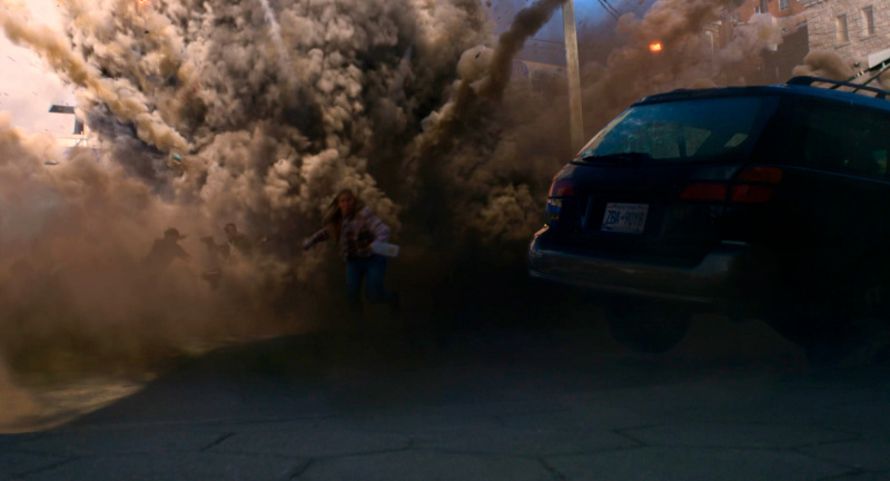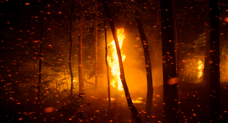 - чуваки едут сквозь горящий лес с идеальной видимостью, полным наличием кислорода и дыша полной грудью;