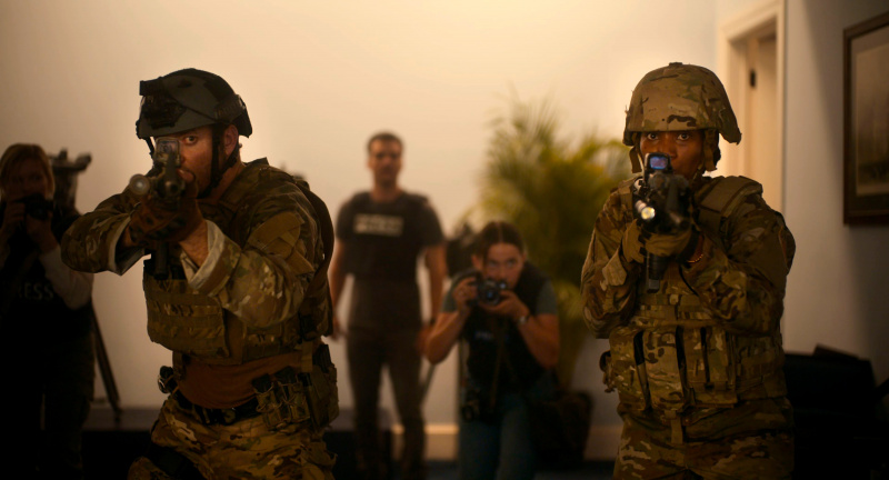 7. Это просто слезы. Режиссер переиграл в 3D-шутеры, а реальные видео боёв смотреть не стал. Дворец Амина брали 20+человек при поддержке батальона спецназа. И то все штурмовики были ранены, а половина погибла. А здесь восемь человек бегут на штурм. У секретной службы так то есть и броники и штурмовые винтовки близко под рукой, да и гранатомёты, а тут, на который год войны, они разодеты в костюмы и отстреливаются чуть ли не из пистолетов.. маразм. Причем сидят по одному человеку в комнате, вместо стрельбы из-за укрытия бегают-подставляются и прыгают через столы. Вообще - там бункер есть нехилый, почему президент не в нем?