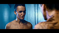 Любовный треугольник Гудвина - Скифа и этой Лисы - просто за пределами полнейшего беспредела. В то, что гарные хлопцы Гудвин-Куценко и Скиф-Вдовиченков сходят с ума по этому андроиду - веришь примерно так же, как в то, что вся эта шобла-мобла - настоящий боевой отряд. Да и любовь у них такая нежная, трепетная, из серии: "Да я тебя, сука, люблю, на хер! - Да пошел ты, козел, ты меня не любишь, ты свой автомат любишь!" Я даже пару раз расчувствовался от таких неземных страстей, которые старательно педалировались весь фильм, причем сопровождались диалогами такого уровня дебильности, что временами это даже казалось особо тонким стебом.