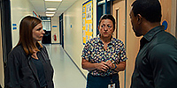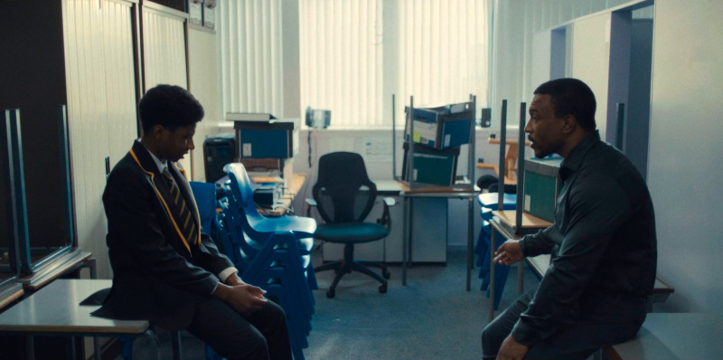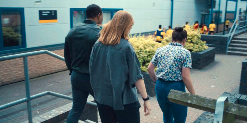 Вторая, школьная серия, тоже очень хороша. Она просто совершенно другая: в ней участвует много народу и показана современная школа, как она есть - буллинг, малоуправляемые подростки, одни учителя умеют справляться с детьми, другие не умеют. И там хорошо сделан момент с тем, как школьник, сын детектива Баскомба, который учится в той же школе, объясняет отцу всякие вещи, связанные с Интернетом и соответствующими форумами и соцсетями: кто такие инцелы, что означают определенные виды реакций на те или иные записи в соцсетях.