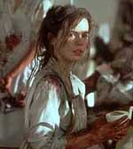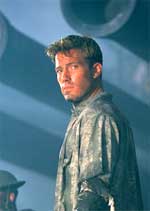 Вторая составляющая - мелодрама - сделана эдак примерно на троечку с минусом, даже на двоечку. Я не знаю, кто сказал Брукхеймеру, что чем тупее мелодрама, тем лучше. По-моему, даже в мелодрамах, которые всегда характеризуются несколько пониженной интеллектуальной составляющей, есть некий предел тупости диалогов и штампов в поступках героев. Здесь этот предел превратился в свою диалектическую составляющую - беспредел. Чему в немалой степени способствовала достаточно безобразная игра всей этой троицы любовников - Аффлека, Хартнетта и Кейт Бекинсейл. Ну, Хартнетт и Бекинсейл и так достаточно бесцветны сами по себе. Но Аффлек - довольно эффектный парень, который, к тому же, со своим закадычным дружком Мэттом Дэймоном участвовал в весьма неплохих кинопроектах. А здесь он играет настолько выхолощенного (в психологическом плане) героя-красавчика - простого, как десять копеек, - что это изрядно раздражает.