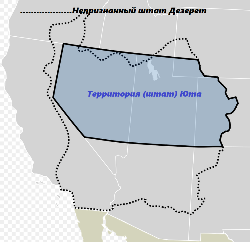 Тогда мормоны пытались замутить свой собственный штат Дезерет, не вышло и началась война мормонов в Юте с федеральным правительством и армией.