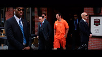 Адама Сэндлера действительно ограничили в тупых шутках и запретили ему хохмить по поводу сисек и членов, поэтому он тут самый унылый и только один раз хохмит на тему нечищеных зубов.