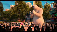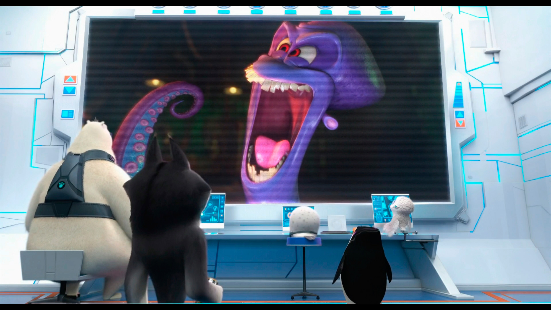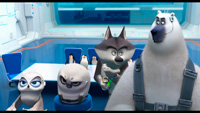 Разумеется, Дэйву противостоит наша бравая четверка пингвинов, у которых под ногами болтается некая спецкоманда "Ветер северный", во главе которой стоит волк Секрет (Бенедикт Камбербэтч). Спецкоманда вся из себя с современным вооружением, но они не такие крутые и изобретательные, как команда Шкипера.