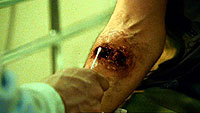 Впрочем, с точки зрения "приятного аппетита" в "Планете страха" все в порядке от начала и до конца: впечатлительные зрители теперь долго не будут посещать небольшие кафешки, да и вообще - получать вкус от еды начнут не скоро. Но это законы жанра, друзья мои, законы жанра! Что за трешак-зомбятник безо всяких внутренностей, ведер гноя, разлетающихся голов (парню из LOST все-таки не повезло, причем очень эффектно) и всяких жутких ран? Это не трешак-зомбятник тогда будет, а просто какая-то кашка рататуй, честное слово!