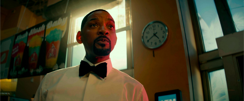 По Сети гуляли видео со съемок, где Уилл Смит отыгрывает какую-то сцену перестрелки с прицепленным к нему сложным стедикамом, ну и могу вас заверить - это снималось не зря, потому что эпизод со съемкой как бы от лица пистолета, который перекидывают друг другу Майк с Маркусом - это прямо-таки классно сделано, так что тут не просто экшен, а очень изобретательно снятый экшен!