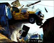 Вторая радость - безусловно, погоня на Ferrari за тягачом. Логику тут лучше не включать, потому что бешено мчащаяся спортивная тачка в течение получаса безуспешно пытается догнать многотонный тягач, однако снято это потрясно: летящие прямо на Ferrari, сбрасываемые тягачом автомобили, врезающиеся и взрывающиеся тачки - просто песня в камне! Точнее, песня в искореженном металле. Ну и, конечно, сцена погони на джипах на Кубе, когда военный джип главных героев минут пять мчится прямо сквозь самопальные домишки несчастных кубинцев. Это смотрится на редкость эффектно.
