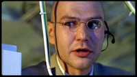 Впрочем, в "Поцелуе бабочки" есть одна составляющая, которая выглядит совершенно инородным телом в данной поделке. Это Сергей Безруков, играющий того самого карикатурного "компьютерного специалиста". Потому что играет он его примерно на два порядка лучше, чем это вообще можно и нужно играть. Он очень хороший актер - без дураков. И когда Безруков ухитряется выдавать почти подлинные страсти в этой картонной дурилке для блондинок-школьниц - мне становится даже как-то неудобно, честное слово! Зачем там Безруков? Поставили бы играть этого "кулхацкера" какого-нибудь Кравченко или - о, придумал! - Алексея Панина! Этот бездарь со съехавшей от мании величия крышей сыграл бы Орланова в точности так, как требовалось по сценарию, - картонный персонаж в трешевом боевичке.