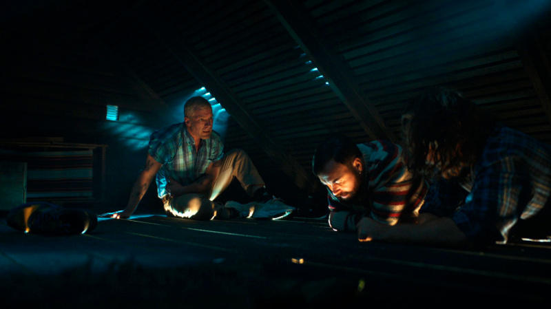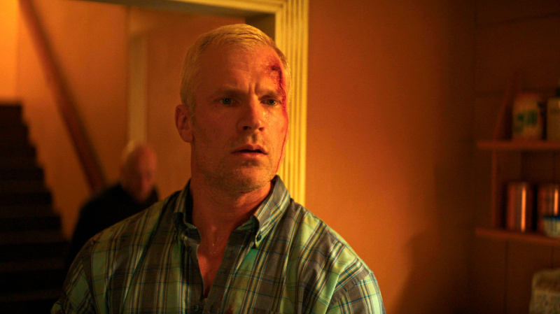 А из тройки сбежавших убийц самый классный - их предводитель Петтер. Он поначалу вроде не выглядит слишком опасным - рядом с ним огромный нацист-качок Рой смотрится намного более угрожающе. Однако главный альфа-самец среди них троих - именно Петтер, и Дейв с Роем его явно боятся. И именно Петтер будет решать, что они все дальше будут делать, именно он отдает приказания, и никто его не ослушается. У Атле Антонсена получился интересный и нестандартный персонаж, и это третья самая заметная роль в данной картине.