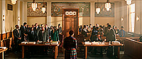 Визит главы компании в суд цитирует визит полковника в исполнении Николсона - и это зря, поскольку "канадец" тупо не тянет. Нам ясна его роль, но мы ему не верим. Выдать что-то типа "Прибыль?! Да прибыль вам не по зубам!" ему просто не по силам.
