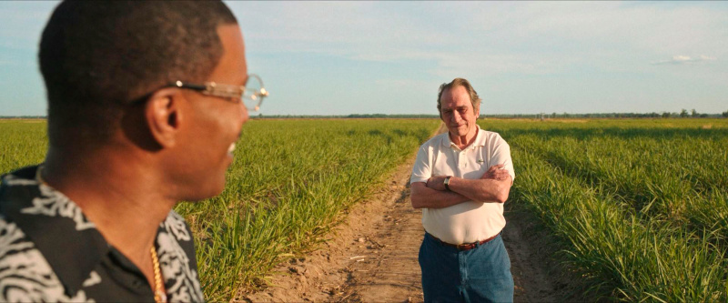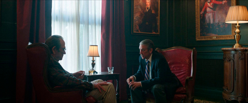 А здесь Томми Ли Джонс - прямо-таки хорош: при всей внешней сдержанности - ему все-таки 77 лет, - персонаж О'Кифа в фильме получился достойный и заслуживающий внимания. И то, как он общается со своими адвокатами, и то, как он общается со своей женой - это все смотрелось классно: на нем держались несколько эпизодов, которые Томми Ли Джонс отыграл отлично, и никакую игуану он при этом ни разу не напоминал.