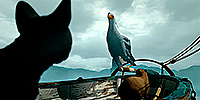 И котик, и птица там были нарисованы очень схематично - вот пара кадров оттуда.