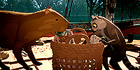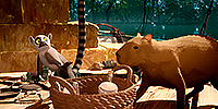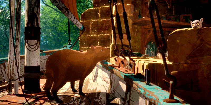 С капибарой все было сложнее. Капибары, вообще говоря, довольно молчаливые животные, но когда они издают какие-то звуки - это звучит очень пронзительно, и такое никак не коррелировало с персонажем из фильма. Поэтому звуки капибары в картине взяли у маленького верблюда.