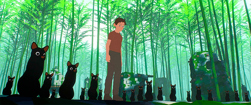 Маленький черный котик живет в лесу на верхнем этаже дома, где раньше находилась мастерская художника, а вокруг дома установлены статуи котов различных размеров. Никакого присутствия людей в мире, где живет этот котик, не наблюдается. Котик, судя по всему, отлично себя чувствует в одиночестве - бегает по полянкам и по лесу, любуется своим отражением в реке.
