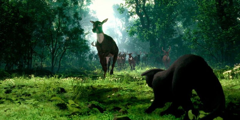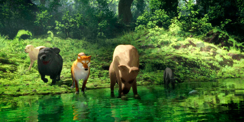 Бегают туда-сюда реалистично нарисованные животные в ландшафтах типа Kena: Bridge of Spirits, при этом реалистично мяукают и хрюкают. Вот и весь мультик.