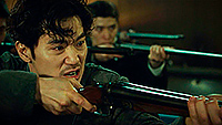 А вот кто тут во всех смыслах играет и первую скрипку, и заодно еще и лихую партию ударных, так это тот самый Аристократ (черт его знает, как это звучит на корейском, но в англоязычных изданиях его называют Nobleman) в отличном исполнении Ким Сон-хо. Картина намеренно начинается с никак не связанной с остальным повествованием сценой с участием Аристократа, потому что зрители сразу должны понять, что он - человек очень опасный, и что за его модной одеждой и тщательно ухоженной прической скрывается совершенно безжалостный киллер.