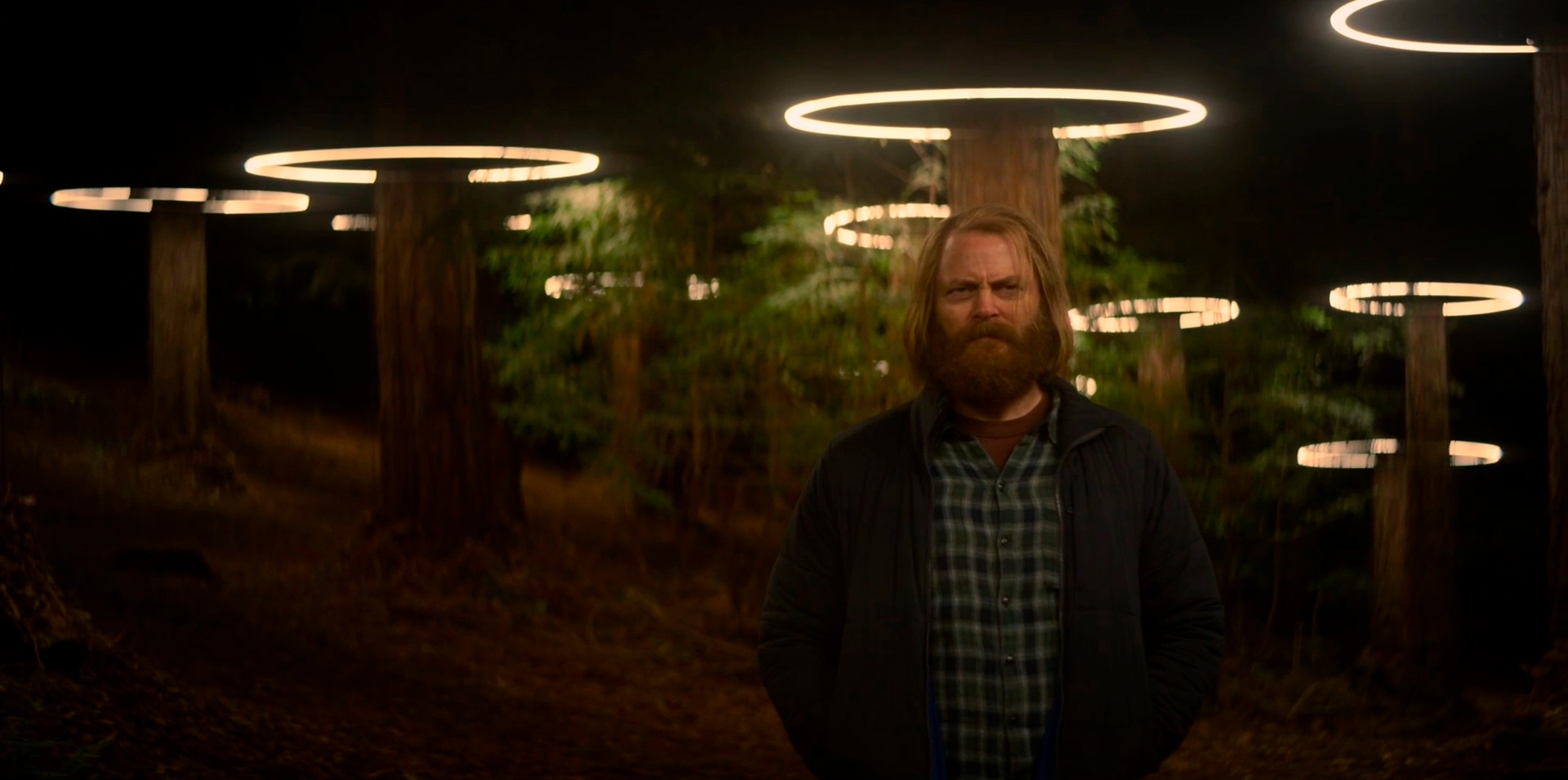 Фореста сыграл Ник Офферман. Я его до этого видел только в небольших эпизодических ролях, также хорошо его помню в роли забавного начальника Рона Суонсона в сериале "Парки и зоны отдыха". Я еще тогда, смотря сериал, подумал, что вот этот тяжелый и слегка безумный взгляд Оффермана можно использовать намного интереснее, чем для роли в ситкоме.