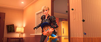 Разумеется, в рекламе заработка в Интернете недостатка не наблюдается (и это тоже очень здорово реализовано чисто визуально): назойливый попап Джей Пи Спамли (Билл Хэйдер) им быстро растолковывает, что к чему, но парочка быстро выясняет, что реально хорошие деньги можно сделать, только если добыть крутейшую тачку гонщицы Шэнк (Галь Гадот) из игры "Убойные гонки".