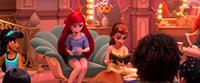 Дальнейшие приключения героев раскрывать не будем, чтобы было интересно смотреть, но там будет еще несколько фееричных эпизодов, среди которых особняком стоит визит Ральфа в Даркнет (тоже очень прикольно сделано, один Дабл Дэн с младшим братиком чего стоит), ну и совершенно крышесносящий и очень стебовый (я бы даже сказал - самостебовый для студии "Дисней") эпизод, где Ванилопа встречается с полным комплектом диснеевских (и не только) принцесс, где красавицы выясняют, в чем у Ванилопы ее суперсила и может ли она считаться настоящей принцессой.